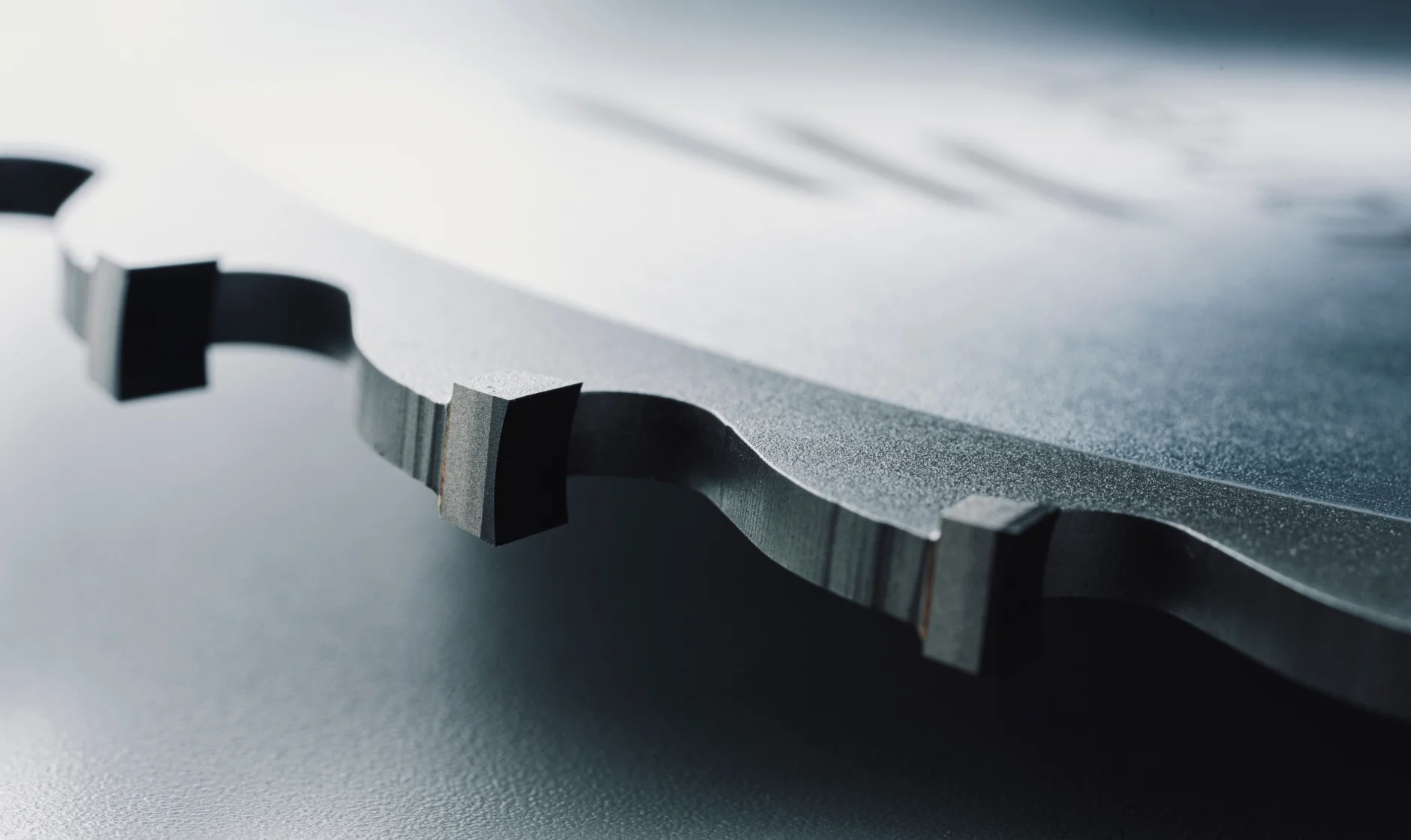 ダイヤモンドチップソーのすくい面にくぼみを設計した特許技術。